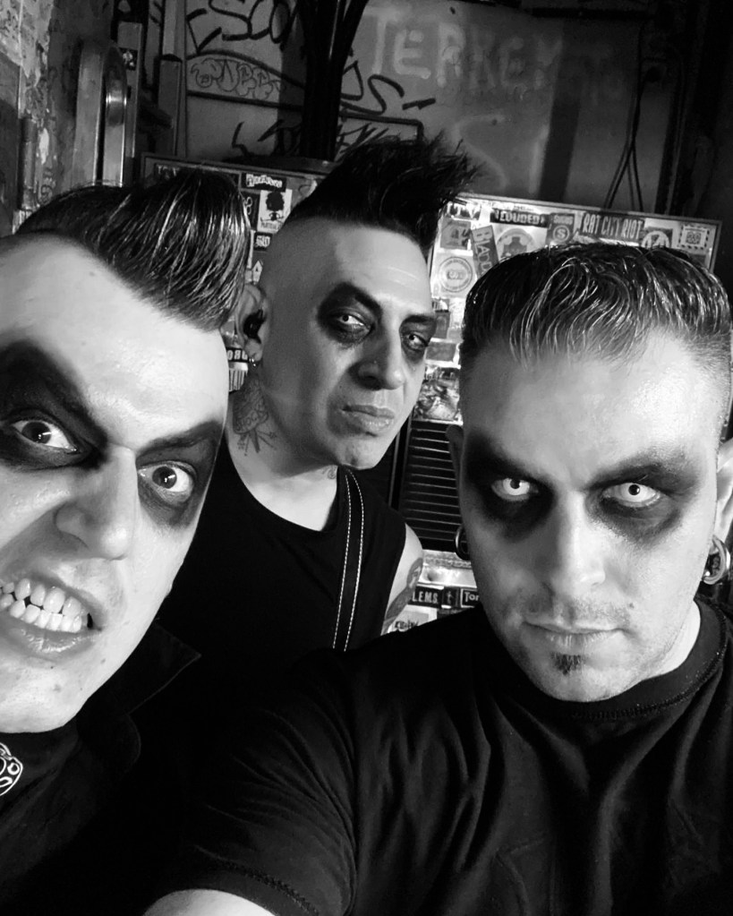 “It was cool too because the studio’s portable that I have,” says De La Muerte, so I brought the tracks after through his apartment and then I was like, ‘man, listen to this’. This is fucking amazing, and he’s like, ‘holy shit’. So so the way I write music is that I have a studio and then I put like, let’s say a track, which is like a tempo and then like at the time of the tempo and then I record my demo version, let’s say. And then that session is the same session till the end, till the end of the song is completely done. So if I go in that session, I will see my original demo in the back always, you know. So at that point when we recorded the drum, I had the old bass and some songs like my guitar and the vocals and everything didn’t sound right anymore. So I was like, ‘okay, maybe I need to record some stuff’. So I redid the guitars and I redid the vocals and I was like, ‘man, the bass is missing something’. And then we started touring and I was like, ‘sure, we need to find like a bass that is like us’, so Txer says, ‘hey, I know this guy’.” By coincidence, Andy Kandil of the Moonshine Stalkers had contacted the band, and Bruno Malo from his band seemed like he’d be the perfect fit. De La Muerte continues. ” I’m like, ‘okay, who is Bruno Malo? I’ve heard of him’, I said. That’s fucking weird [because] I’ve been trying to talk to him for the past ten years [at festivals] Every time I go say hi, because I know lhe’s a really good bass player. and every time I’ve seen him, I’m like, ‘man, this guy’s just kicking ass!’ I always wanted to go say hi to him, and every time I go say hi, somebody gets in front of him, and then the person leaves and he’s not there anymore.”