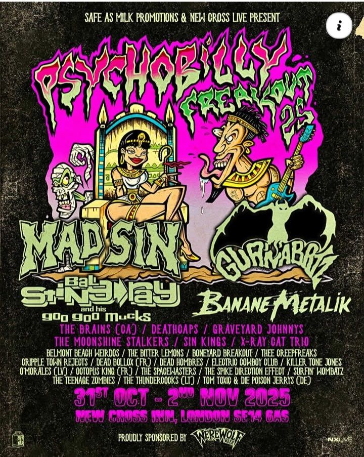 Mad Sin, Bal Stingray and the Goo Goo Mucks, Guanabatz, Banane Metalik, The Brains, the Deathcaps, The Graveyard Johnnys, Moonshine Stalkers, the Sin Kings, the X-Ray Cat Trio and many, many more