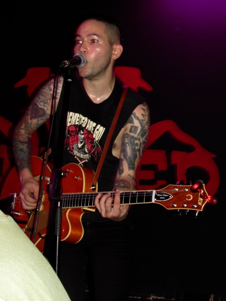 I was really lucky to have the upbringing because that music was in my head and my heart from a young age, you know. And at that time, I didn’t really know about psychobilly. I knew about what like neo-rockabilly, I knew about the Polecats. I knew about that. I was a huge Polecats fan. Of course, the Quakes, you know, but that wasn’t psychobilly, if you know what I mean. I didn’t know there was an actual like scene, like what’s happening in Europe like that, you know. And basically, a tattoo artist, Irish friend of mine, said, ‘man, you need to’…he saw where I was and I wasn’t doing well, like I said, and he said, ‘man, you need to go to London because this is where all that stuff was happening’. He used to live there like twenty years ago and he told me that twenty years ago. I literally went there for a week because that’s all I could afford. In that one week, I never came back.