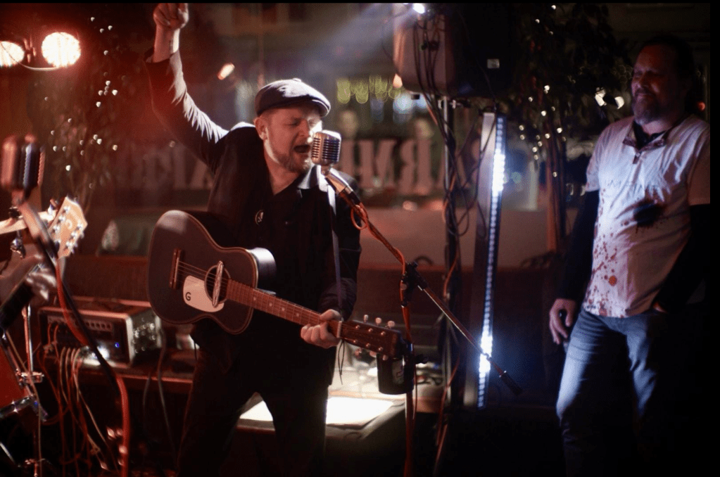We go back to the roots of ‘Dirty Old Town’. I put it back to the roots because the version we all know from from the Dubliners or from the Pogues but Evan McColl who wrote it in 1949, doesn’t write it as a waltz rhythm. It was a simple sing-along song for a musical. The funny thing is everybody thinks it’s an Irish traditional song. No, it’s written for a British coal miner’s town [Salford]. So why do I put it into a rock and roll shape? It’s because I love this song, but we are no Irish folk band. We are a rock and roll band and I thought about if it’s possible to sing it as a rock and roll song. I tried and it worked. It took a bit of persuading to get my bandmates to try it as a rock and roll song. If I take a look on our YouTube channel it proves that it was a good idea, because the most played song is ‘Dirty Old Town’.
