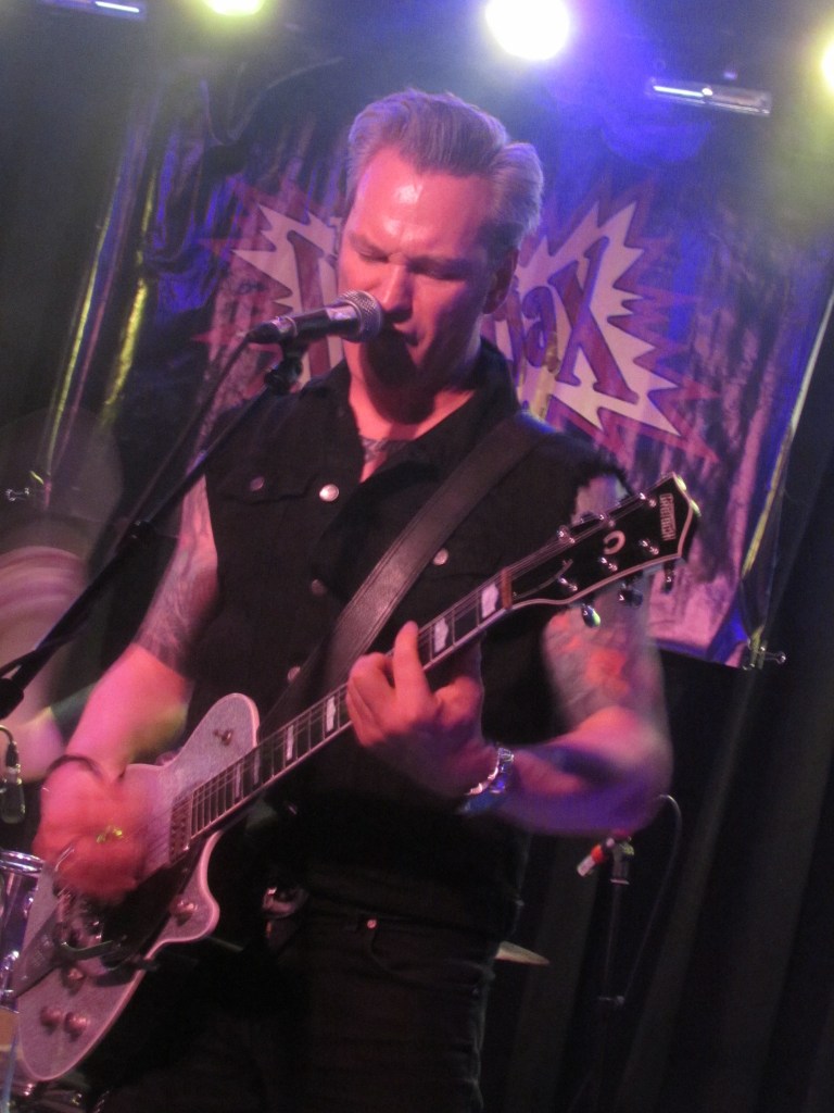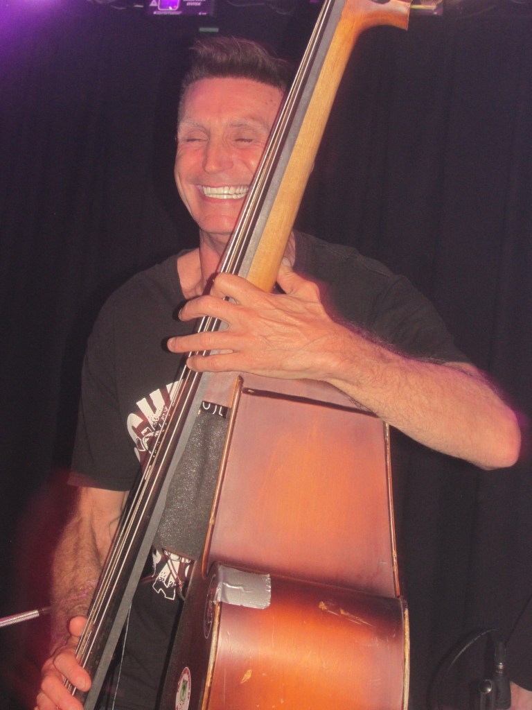 The next band on was Preston Sam’s Hyperjax. Located at the pop-punk end of the psychobllly spectrum, the band plays a high energy set propelled along, in no small part thanks to the relentless slapping of Daniel Clark on the ole doghouse bass. Playing material from their recently released and very good album Scars on the Horizon, as well as crowd favourites including happy pills. There is more depth to the Hyperjax songs than is true of most of the songs in this genre. Sam is also a very good guitarist. ‘Just Passing Through’ features a quite mighty bottom end, whilst ‘Whatever Happened to the Krewmen’ absolutely pummels along. This is an excellent set from a band that is firing on all cylinders.