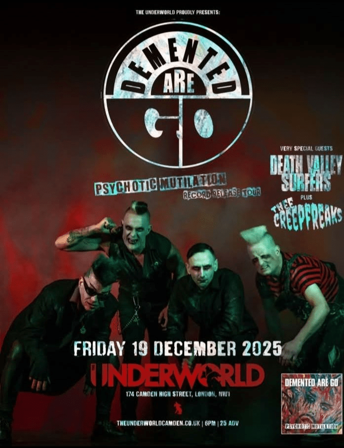 Friday 19th December, Demented Are Go, the Death Valley Surfers, the Creepfreaks, the Underworld, Camden