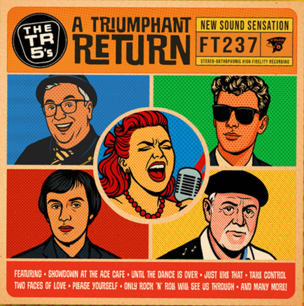 With eight original numbers and three covers, the TR5’s have been hard at work crafting a disc with their own unique sound. Part rock and roll, part pop (I’m hearing influences from the 1960s and indeed, from the 1980s as well!) there’s even a slight latin heat, though rest assured this is still, at it’s heart, a rock’n’roll record. The three covers on ‘A Triumphant Return’ are well chosen and range from a hard rockin’ version of Janis Martin’s 1956 hit ‘My Boy Elvis’ to an atmospheric rendering of the fab fours ‘Oh Darlin’ via the accentuated off-beat feel of Joe Meek’s ‘You Gotta Pick a Darlin’ that is sure to be a live dance floor filler. In fact pretty much any one of the numbers on this disc are gonna be a winner live and I feel fairly sure that the band have already road tested most of them! From the eight originals I gotta pick three darlin’s though. ‘Hypocrite’ with it’s oh-so-slinky rhumba feel and razor sharp backing vocals, is one; I like ‘Until the dance is over’ just for the sheer fun of the drum and guitar intro and that catchy chorus and, last but not least, ‘Please Yourself’, because it works so dang well with Rusty’s voice, the chords are cool, and the ‘You can please yourself’ call-and-response is just fab.