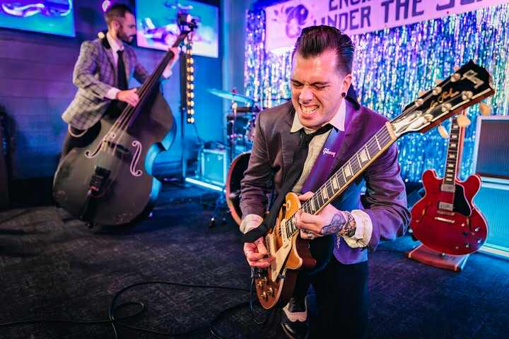 Back in 2014, I was playing in a covers band on a ferry, mostly doing classic hits, but we snuck in a couple of rockabilly numbers from Elvis and Chuck Berry. Those songs lit a fire in me—I realized I wanted to dedicate myself to this sound full-time. So I called up some of my best friends, who luckily happen to be incredible musicians, and the next decade is history. From those first rehearsals to local gigs and full-blown shows, we’ve been chasing that authentic rockabilly vibe ever since.