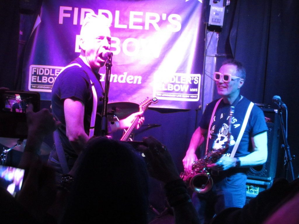 Next up, it’s fun time with the Highliners. Clad all in black with pink braces and pink Dr. Martin’s boots, the band kicks off with ‘Call Inspector Clueso’. From here on in, we are treated to gem after gem including, ‘Mini-cab’, ‘Shit TV’ and ‘Henry the Wasp’ replete with giant wasp expertly operated by Richard Smith. A wonderful rendition of ‘Rude Boy’ demonstrates that the band’s creative juices continue to flow. The three original members: Luke Morgan on vocals, Chris Finch on sax, Ginger Meadham on drums, and new boys Mark Bending on guitar and Ricky Sardi on bass combine to create the perfect party sound. They leave a smile on everyone’s face.