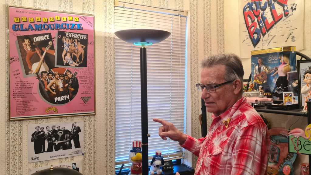 It’s not every day that a living legend invites you into his home for a tour, but, then again, Rockin’ Ronny Weiser is exceptional even among those who carry that label. The eighty year old founder of Rollin’ Rock released music from Gene Vincent, Ray Campi, Alvis Wayne and Charlie Feathers among so many others, carrying the scene through the Seventies and beyond. His house in the suburbs of Las Vegas gives no clues outside about the Rock n Roll treasures which line his walls inside, and everything he shows us has a story about a unique life in Rock n Roll.